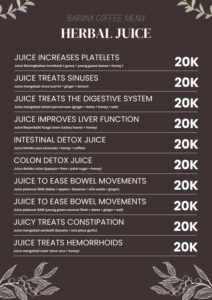 Feeling a bit off or need a little recovery boost? Our herbal juice is the answer. Made from a blend of real roots and spices, it's our go-to recipe to help your body feel balanced and recharged.